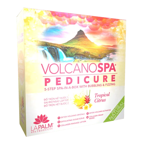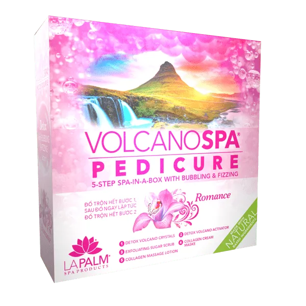 Relax and rejuvenate with Volcano Spa Pedicure, a new luxury spa experience in a sighle-use pedicure treatment. Detox Volcano Crystals and Activators combine to create an invigorating and detoxifying experience with a fun buddling explosion! Complete the pedicure treament with an exfoliating sugar scrub, collagen cream mask and collagen massage lotion made with organic based ingredients.